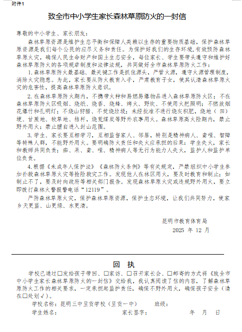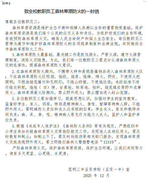昆明三中呈贡学校(呈贡一中)森林草原防火宣传