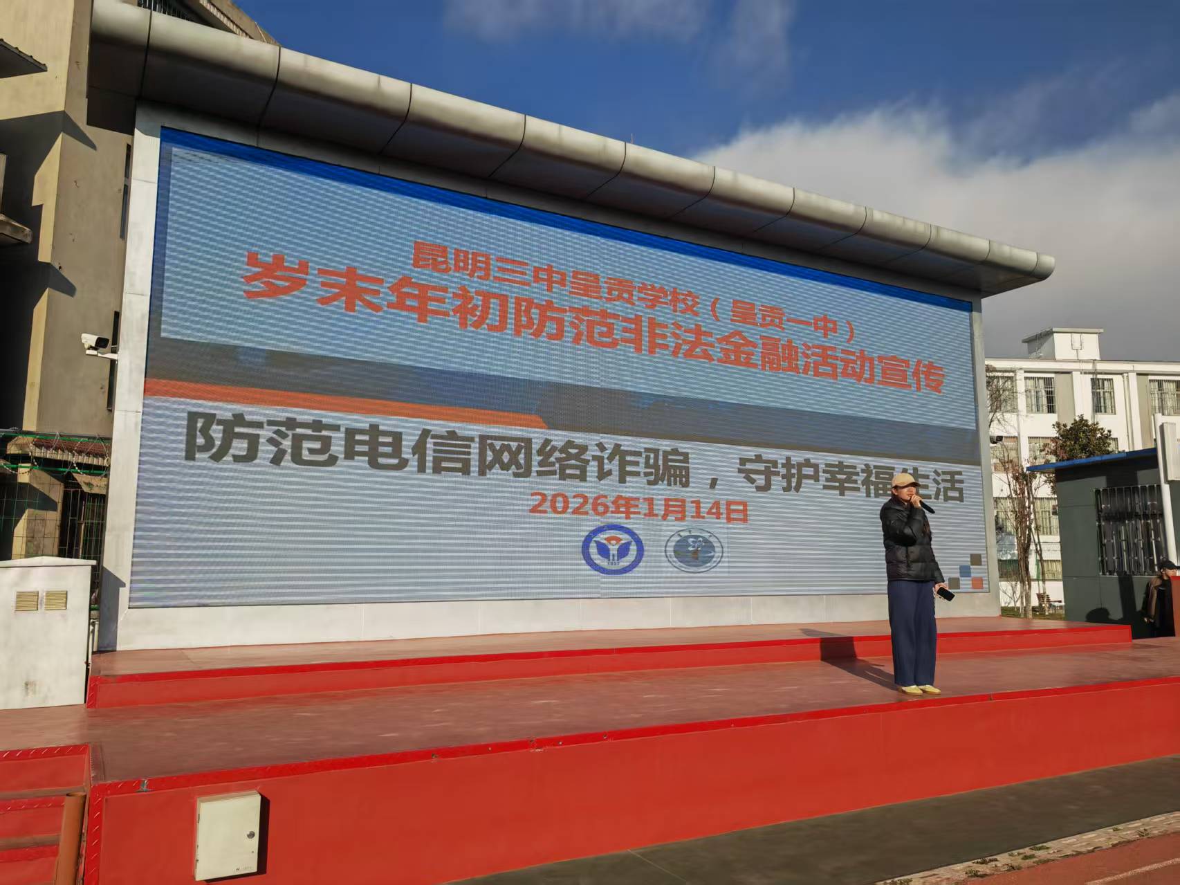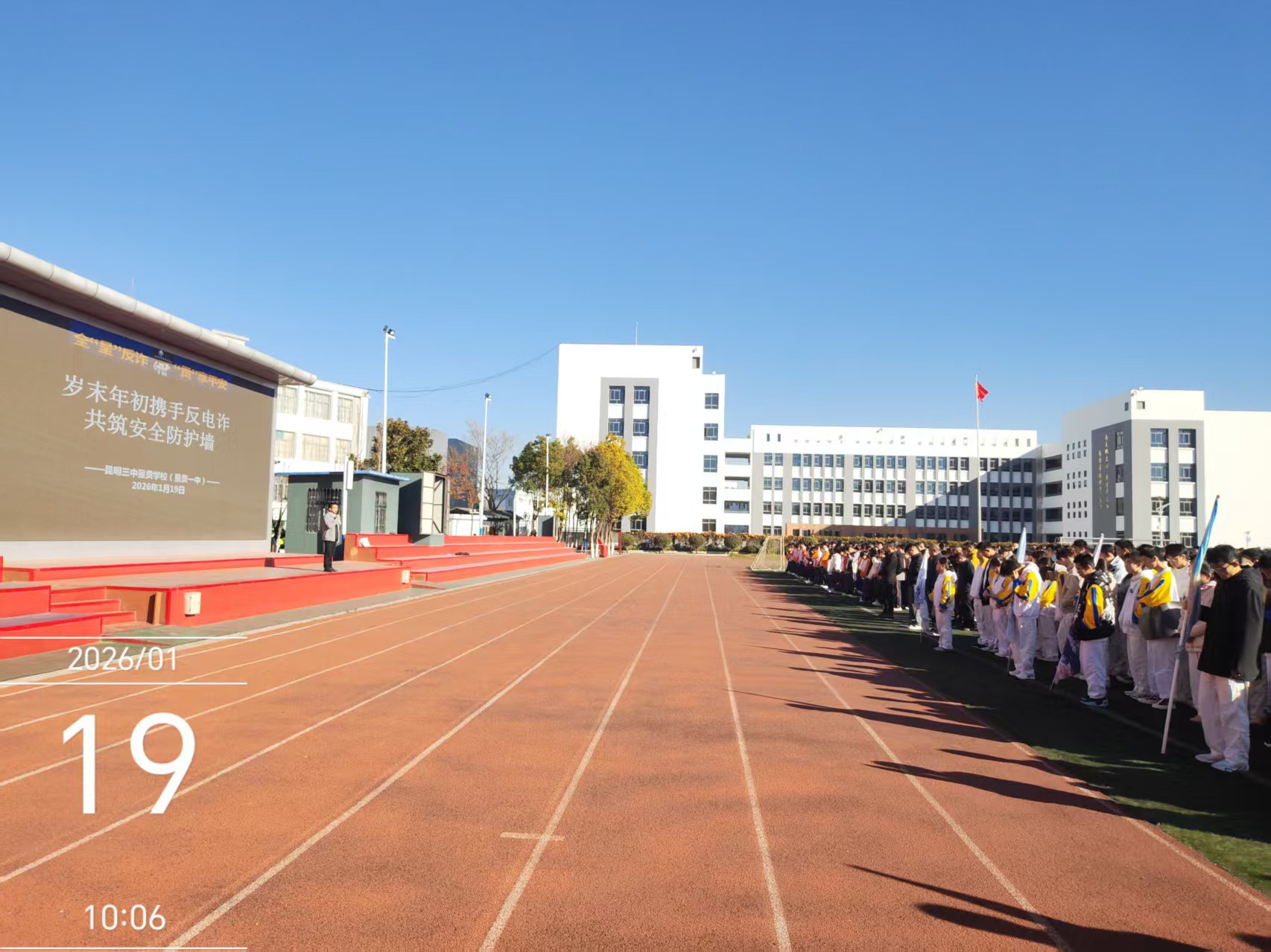 2026年1月14日、1月19日我校利用大课间和升旗仪式对全校师生进行反诈宣传,学校反诈宣传员李老师、德育处副主任王健老师和党委苏金祥书记分别进行了发言,提醒全体师生注意在岁末年初期间,电信网络诈骗活动比较频繁,务必要提高警惕,增强安全意识,避免上当受骗。